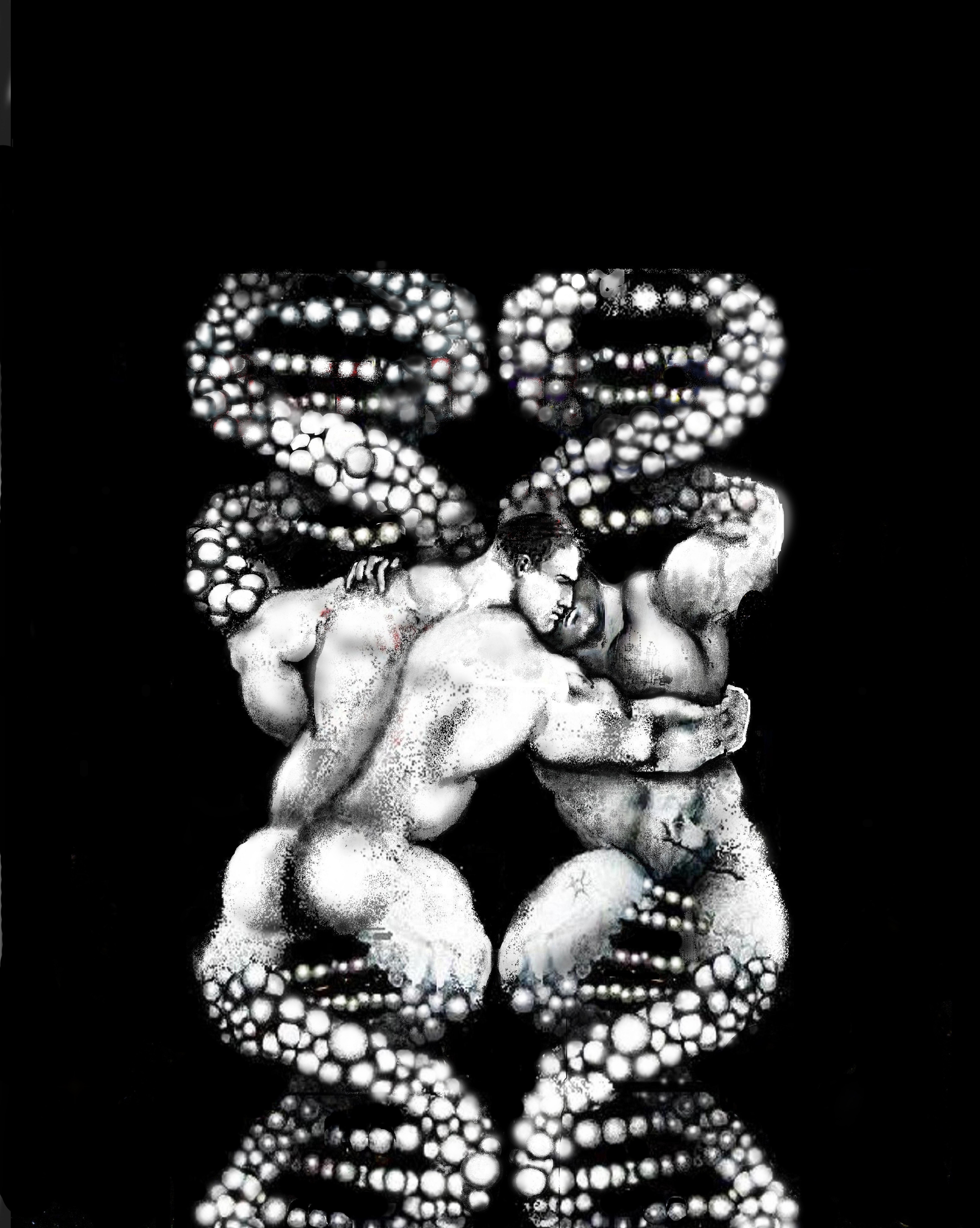 Entré el caótico enredo de cuerpos débiles y envejecidos, el suyo fuerte, proporcionado y limpio, se destacaba como una gema entra las piedras. Pero sus proporciones no eran clásicas y bellas, sino voluptuosas y dramáticas, su contextura era ancha y tosca, cargada de pesados músculos que se abultaban y movían con grosera virilidad, huesos anchos armoniosamente alineados, cargaban pesadas masas que se abultaban y movían con vulgaridad, dándole al todo una emanación sensual, casi genital, casi tan impura y humana como el olor del cuerpo. Así de vulgar era la vida, y más fea la no vida que lo rodeaba. Sufrí un primer golpe de horror ante esa obscenidad vital. No era posible pero el hombre de sueño existía en este mundo de la vigilia, una vigilia de pesadilla. Pero no podía escapar de esa verdad. La levedad de sus ropas apenas contenía la desmesura de su cuerpo, que se asomaba produciendo un desesperado deseo en la viciosa otra especie que lo rodeaba, entregadas al tabú y al deseo nefando. Hasta los animales más primitivos se juntan solo con su especie, esa simple ley natural acá se desobedecía, se olvidaba, hasta la biología que yo despreciaba era mejor que esto. La heterofilia, la unidad entre lo distinto, aquí se ejercía con desesperación y apetito ansioso. Y la satisfacción que ofrecían los pornoi no satisfacía nunca. Si los hombres de la secta escapan de la naturaleza para flotar a lo elevado acá se moría la vida agusanada por el mal. Sin duda había algo peor que la vida.